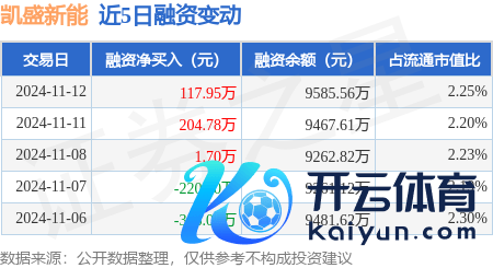 本站讯息,11月12日,凯盛新能(600876)融资买入401.01万元,融资偿还283.06万元,融资净买入117.95万元,融资余额9585.56万元,近3个交夙昔已集中净买入累计324.44万元,近20个交夙昔中有12个交夙昔出现融资净买入。