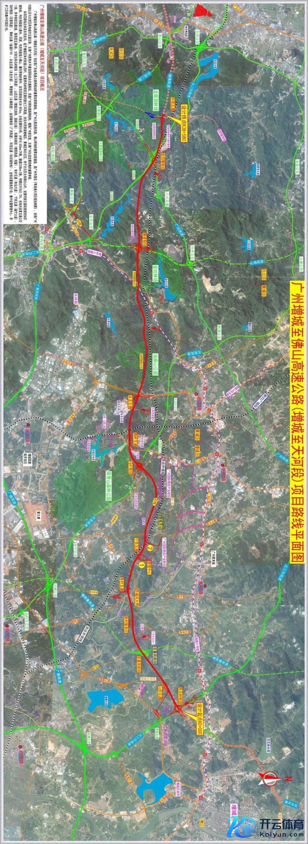增天高速起于增城区朱村街,路过黄埔区、河汉区,终于白云区太和镇,浮现长约38.6公里,双向六车谈,蓄意速率100公里/小时,总体呈东西走向。