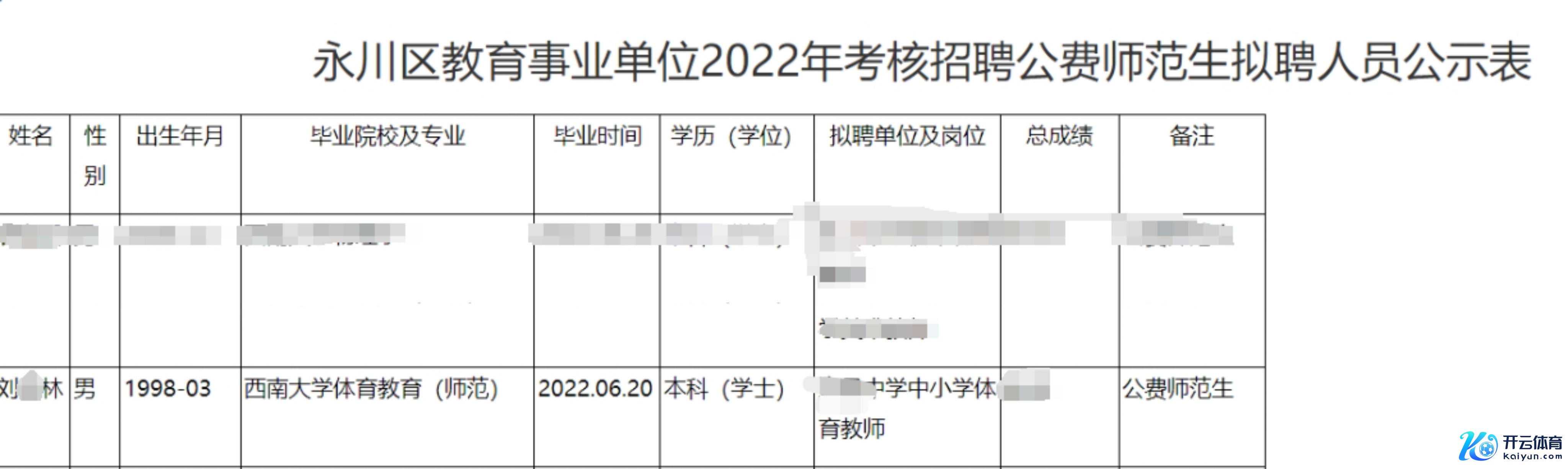 重庆市永川区赞成行状单元2022年观测招聘的公费师范生拟聘任名录。