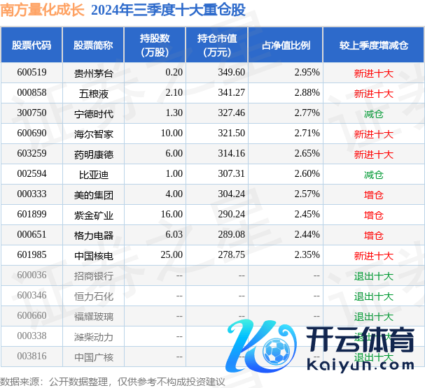 南边量化成长为股票型基金,凭据最新一期基金季报流露,该基金钞票竖立:股票占净值比92.63%,无债券类钞票,现款占净值比7.66%。基金十大重仓股如下: