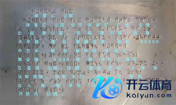 现行盲文的例子:上海徐家汇公园的盲文简介,图片开始:Wikipedia