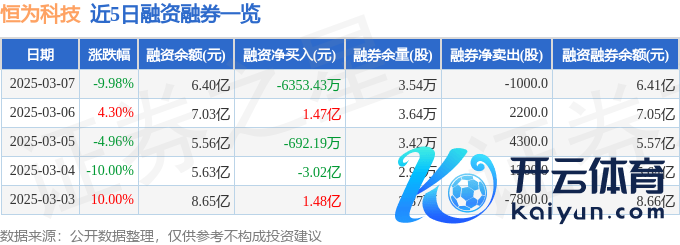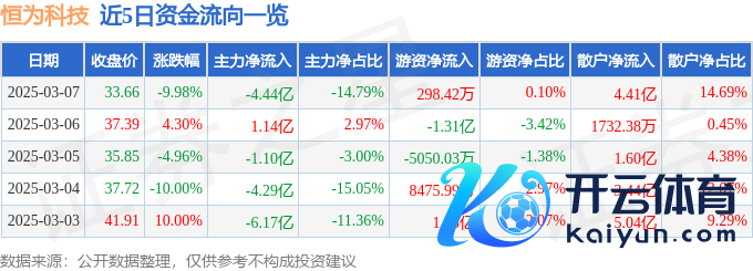 本站音讯,死字2025年3月7日收盘,恒为科技(603496)报收于33.66元,下降9.98%,换手率26.94%,成交量86.27万手开云kaiyun,成交额29.99亿元。